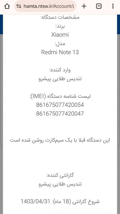رنگ مشکی در حد نو یک ماه گارانتی دارد