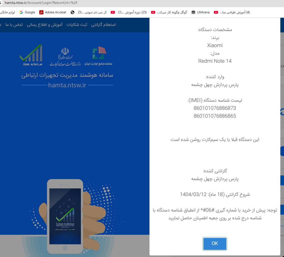دستگاه 5 ماه و نیم کار کرده است و 12 ماه و نیم گارانتی باقی مانده است